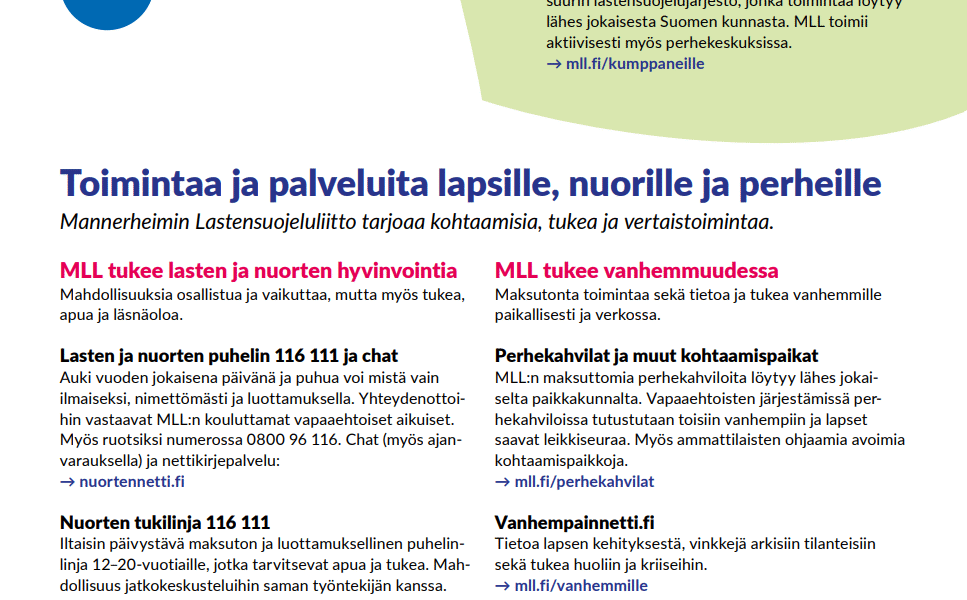 MLL:n palvelut lapsille, nuorille ja perheille